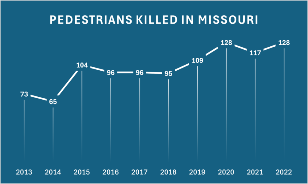 From 2013 to 2022, more than 1,000 pedestrians were struck and killed in Missouri. That’s about 100 each year.